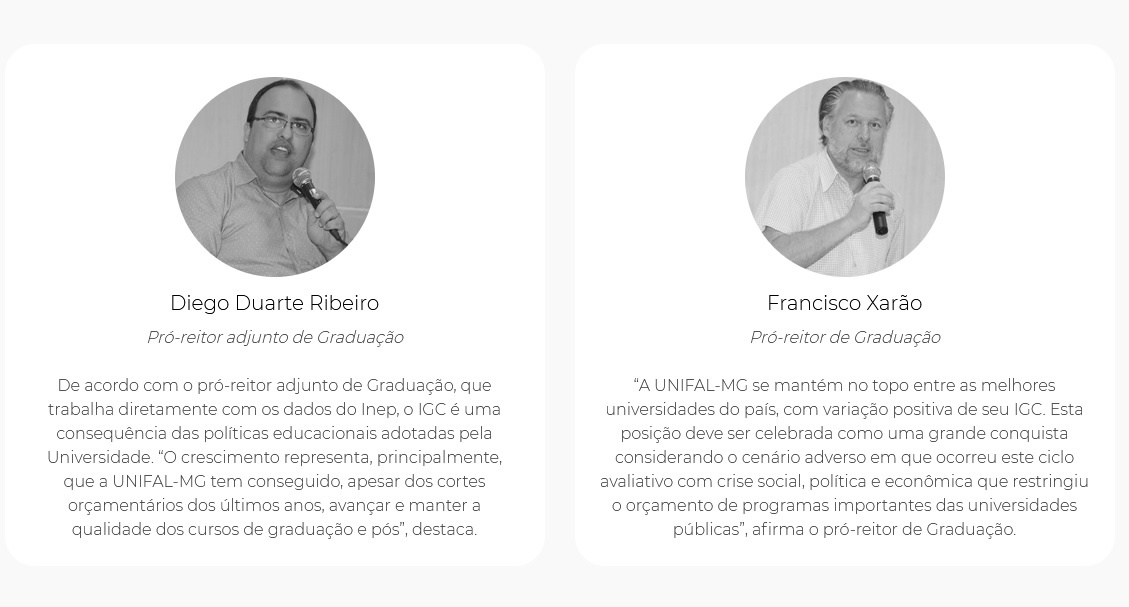 Para o pró-reitor adjunto de Graduação, que trabalha diretamente com os dados do Inep, o IGC é uma consequência das políticas educacionais adotadas pela Universidade. “O crescimento representa, principalmente, que a Unifal tem conseguido, apesar dos cortes orçamentários dos últimos anos, avançar e manter a qualidade dos cursos de graduação e pós”, destaca.