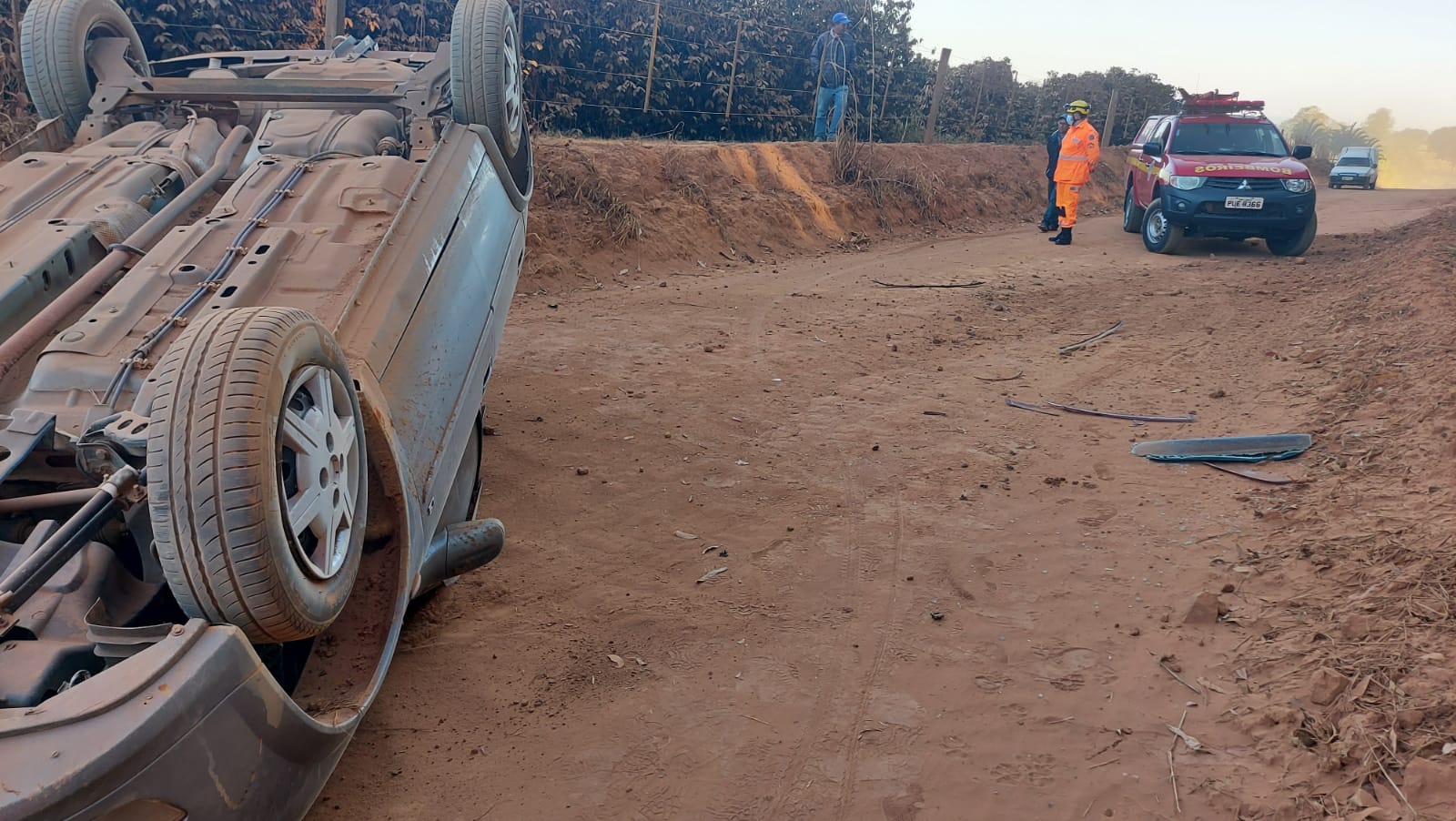 - Carro capota na Estrada do Harmonia durante a madrugada