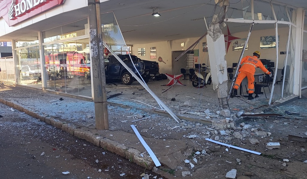 Uma caminhonete invadiu uma concessionária de motos, na manhã deste sábado, após o motorista perder o controle da direção do veículo. O acidente foi na avenida José Paulino da Costa, no bairro Cruz Preta.