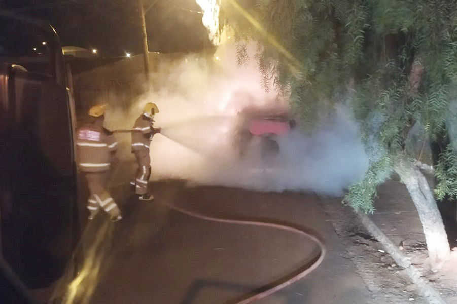 Um automóvel pegou fogo durante a madrugada deste domingo em Alfenas. O incêndio foi registrado no bairro Residencial Teixeira. Ninguém ficou ferido.
