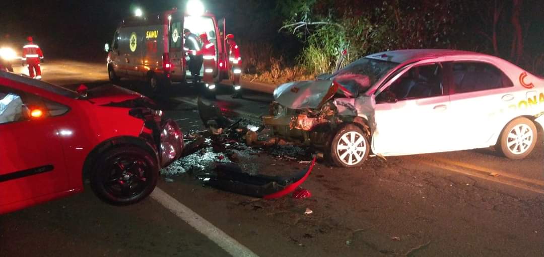 Dois carros bateram de frente na rodovia MG-179, no km 01, próximo ao trevo de Alfenas. O acidente foi durante madrugada de domingo, segundo informações do Corpo de Bombeiros.