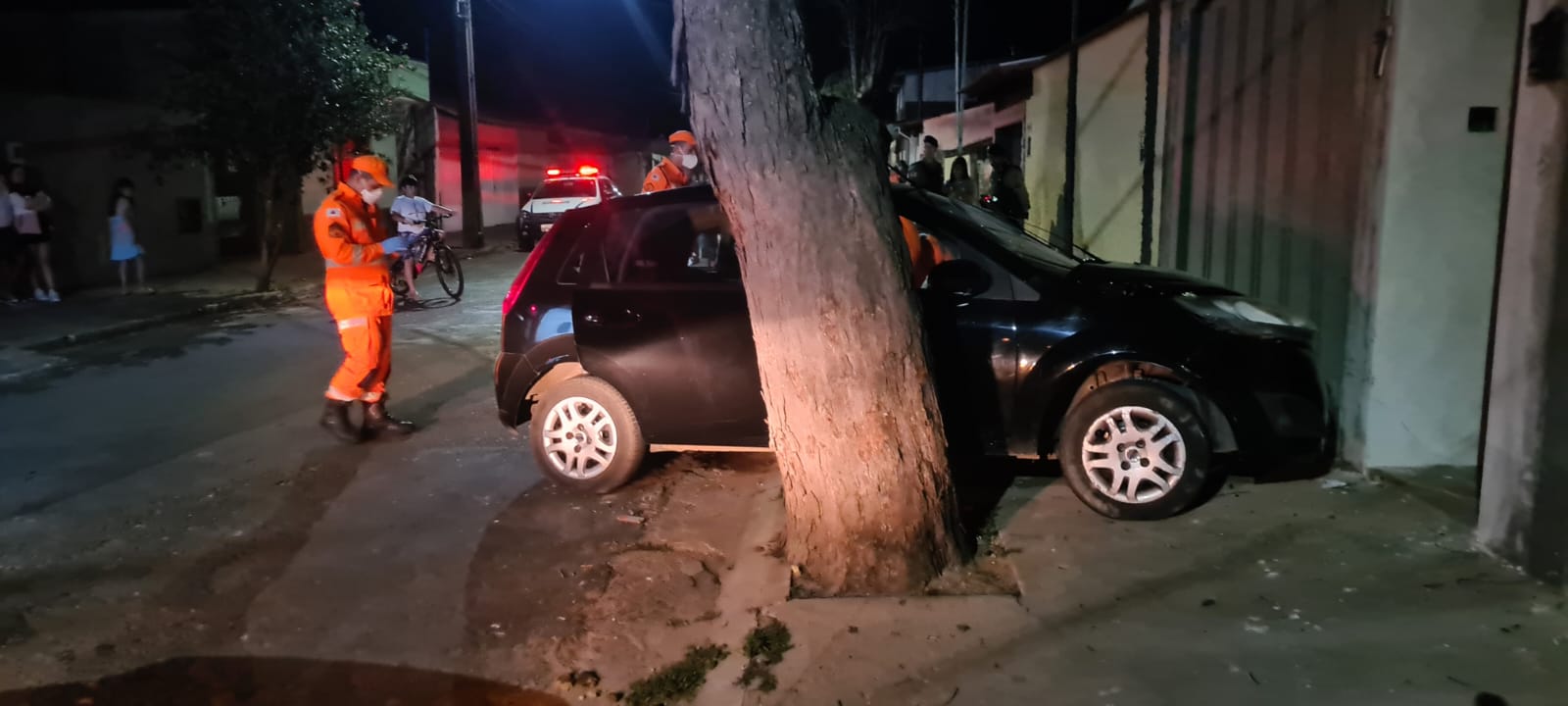 Um veículo bateu no portão de uma residência no bairro Morada do Sol. O acidente foi na noite de domingo e, segundo o Corpo de Bombeiros, o motorista teve corte na testa e diversos hematomas no corpo.