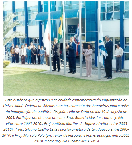 “Fica aqui o grande abraço e reconhecimento às colegas e aos colegas de ontem e de hoje que constroem a Universidade Federal de Alfenas”, ressalta o atual reitor.