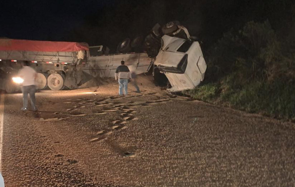 Acidente entre caminhões atinge quatro veículos
