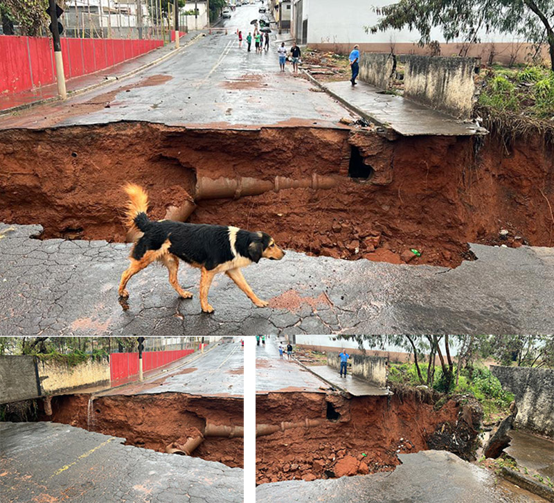 Uma forte chuva, na tarde de quinta-feira, provocou diversos estragos em Alfenas. Em um deles, na rua Cristina Mendes (no bairro Vila Betânia), parte da via rompeu-se, provocando uma cratera.