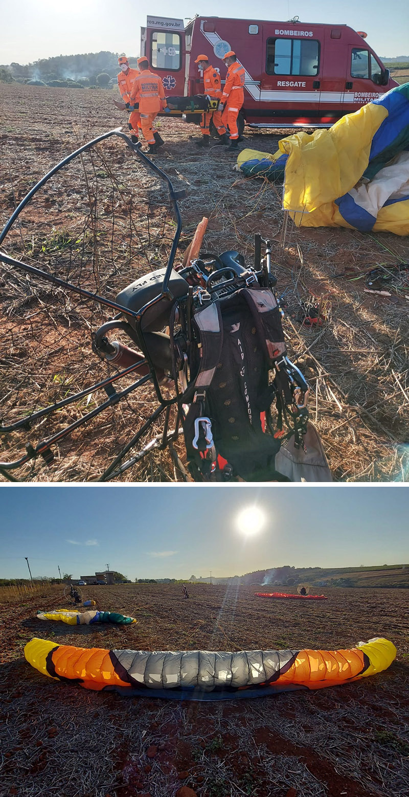 De acordo com o Corpo de Bombeiros, testemunhas relataram que o homem estava sobrevoando a zona rural, quando perdeu o controle do paramotor e bateu em um fio de alta tensão do poste, sofrendo choque elétrico e, em seguida, houve a queda.
