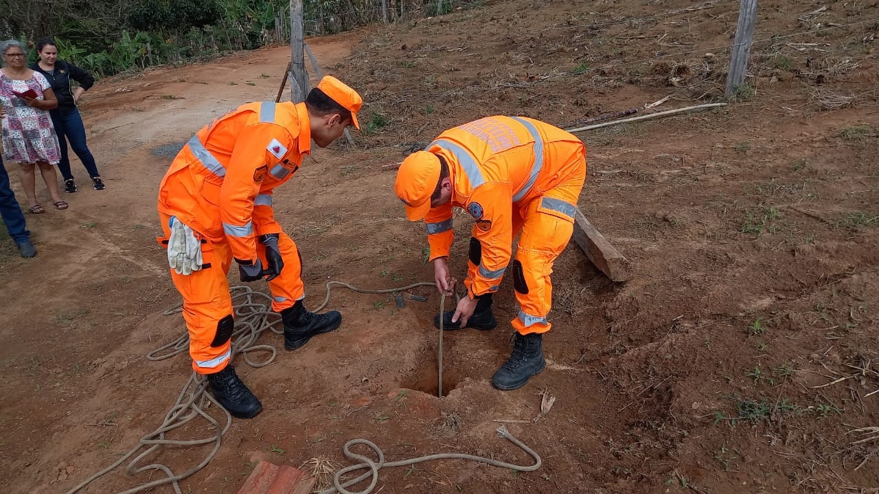 De acordo com a corporação, o animal caiu em uma cisterna seca, com diâmetro de aproximadamente 20 centímetros, o que dificultou o resgate do animal. O local estava de difícil visibilidade, segundo os bombeiros.