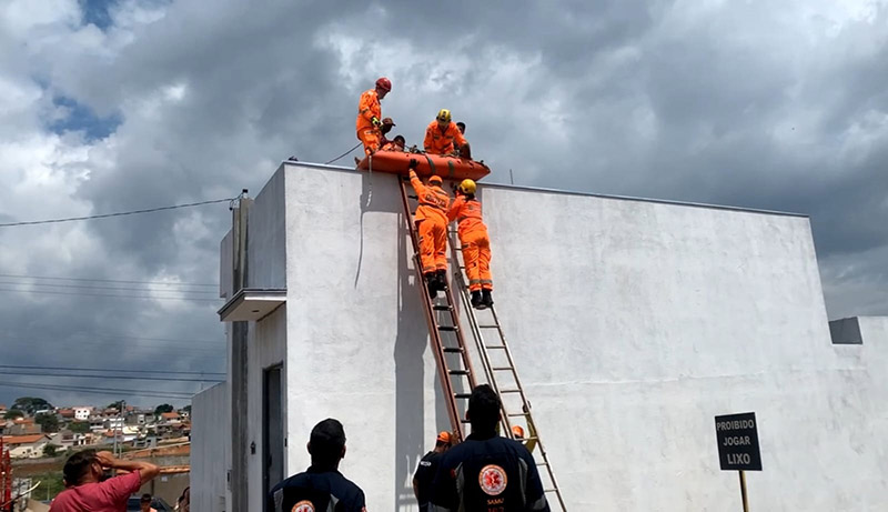 Os militares do Corpo de Bombeiro realizaram os primeiros socorros e a descida segura da vítima pela parede externa da edificação, com o uso de cordas e técnicas de salvamento em altura.