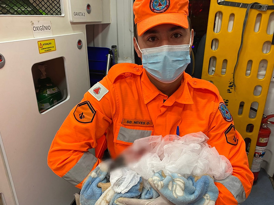 A equipe de resgate do Corpo de Bombeiros informou que aferiu os parâmetros do bebê e, conforme protocolo de atendimento de emergências obstétricas, foram adotados os procedimentos, com o corte do cordão umbilical.