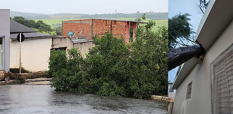 Em um dos locais atendido pelos bombeiros, a árvore caiu em uma residência.