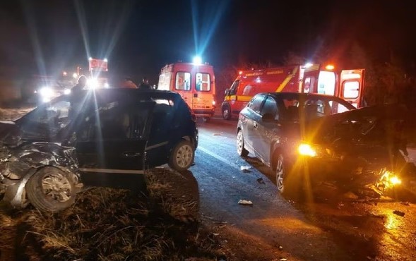 De acordo com uma testemunha, um dos carros (GM Ônix) bateu em alguns galhos que estavam sobre a rodovia e, com isso, o motorista perdeu o controle e bateu de frente com outro automóvel.