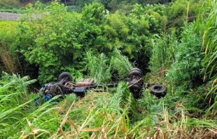Caminhão, com passageiro de Alfenas, cai em uma ribanceira em Guaranésia
