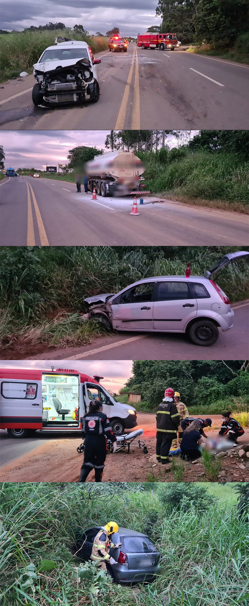 Os demais motoristas envolvidos no acidente não sofreram ferimentos. Abaixo, fotos divulgadas pelo Corpo de Bombeiros.