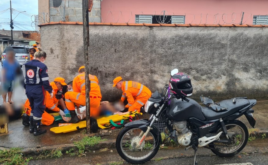 Os socorristas realizaram os atendimentos necessários, incluindo a contenção da hemorragia e a imobilização da área fraturada. Após os primeiros socorros, ambos foram encaminhados ao Hospital Alzira Velano para avaliação médica.