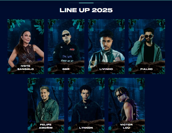 O cast musical de 2025 ainda inclui o hitmaker Felipe Amorim, conhecido por "Love Gostosinho", o rapper L7NNON ("Ai Preto"), o DJ de música eletrônica Victor Lou, o DJ GBR e o residente DJ Fialho, garantindo a diversidade do axé ao eletrônico.