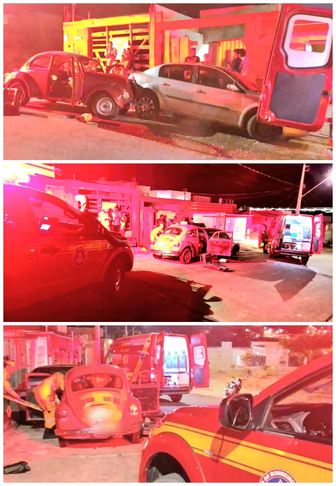 A Polícia Militar foi acionada para dar apoio à ocorrência de trânsito e tomar as providências cabíveis em relação aos veículos. Abaixo, foto divulgadas pelo Corpo de Bombeiros.