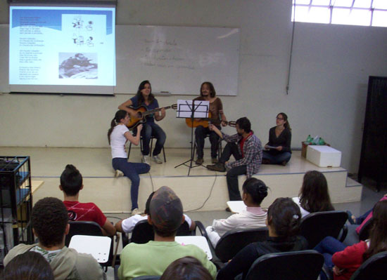 Cada tema foi exposto por uma dupla de universitários, que utilizou dinâmicas variadas atraindo a atenção dos alunos do ensino médio. Os estudantes puderam ainda cantar músicas, com letras relacionadas ao tema trabalhado na oficina, e assistiram um vídeo documentário.