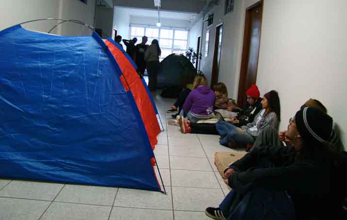Os estudantes dizem que não deixarão o local enquanto as reivindicações não forem atendidas