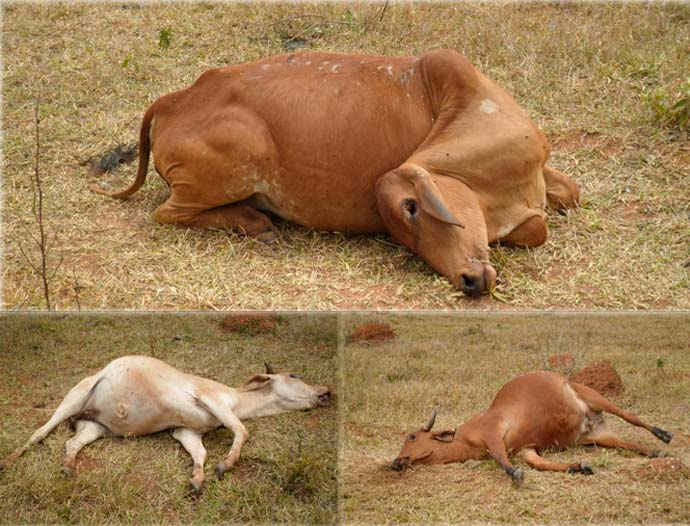 O veterinário Ênio Teodoro Ribeiro informou que a intoxicação atinge o sistema nervoso do gado, que chegou a ficar agressivo. Porém, caía e não resistia. Ele acredita que a intoxicação é cumulativa, uma vez que parte do gado só morreu dias depois.