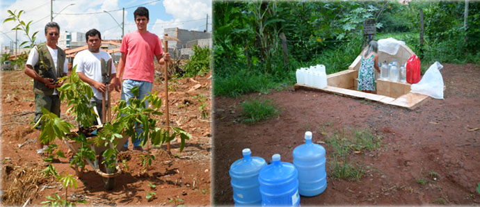 O ambientalista Itamar Silva e os dois estagiários do curso de agronomia durante o trabalho de reflorestamento em diferentes regiões do município num trabalho de preservação das bacias hidrográficas (Fotos: Divulgação)
